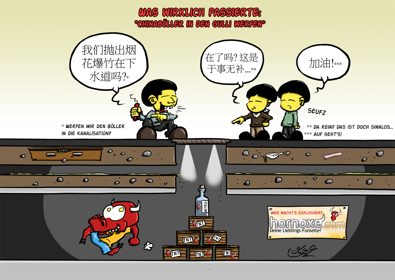 Hornoxe.com Comic – Drei Chinesen und der Gullideckel