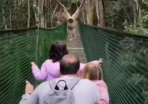 Clever. Die Affen benutzen die Affenschaukelbrücke wortwörtlich auf einem höheren Level.