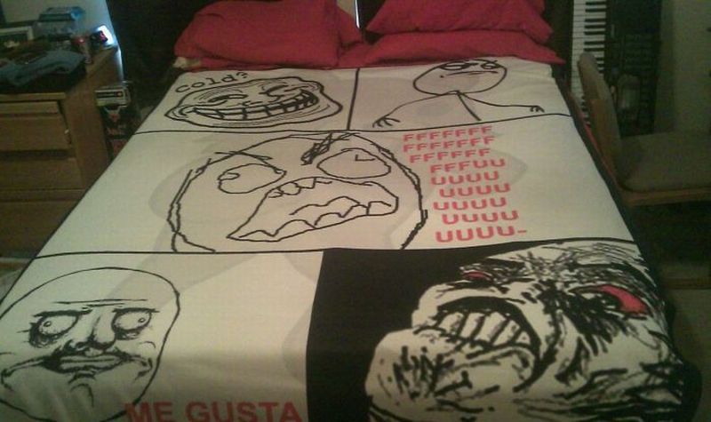 Schaut euch mal die Bettdecke genau an … auf der Rückseite schimmert Pedo-Bear durch.