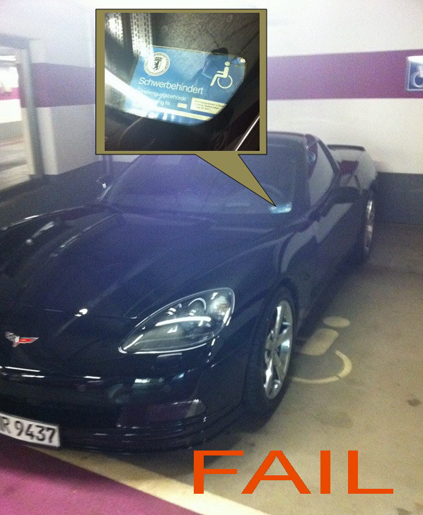 Der FAIL an dem Behindertenparkplatzbild ist der NEID des Fotografen 😉