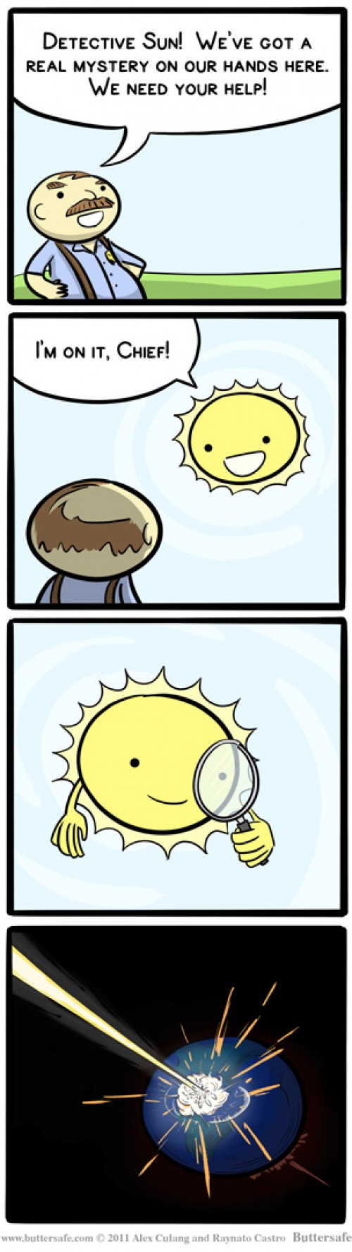 Übrigens, die Zeichnungen sind jedes mal so was von schlecht und unlustig, dass man es schon nicht mehr beschreiben kann. Wie klein muss der Geist sein, damit einem hier nur ein Grinsen auf die Lippen kommt.