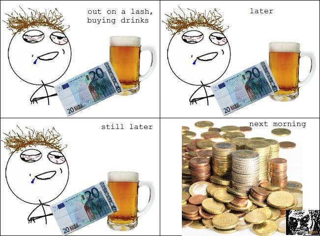 Des is ne geile Idee, würde auch vlt. ein paar Monate halten, aber irgendwann wäre auch das Geld zumindest der € wertlos. 😐