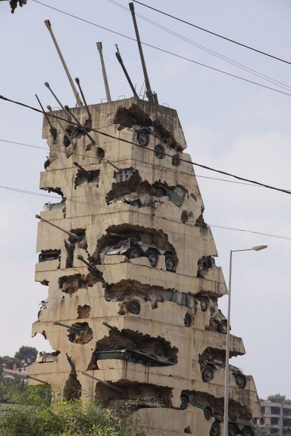 @ El Presidente: ganz einfach, 50 israelische Panzerwagen standen 150 Palestinische Betonmischmaschinen gegenüber. Dann machte es Bum und das entstand dabei. Man hat wohl versucht, die Fahrzeuge mit Hammer und Meißel zu befreien, aber schnell aufgegeben.