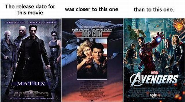 Soon Schwachsinn Topgun 1986 + 13 Jahre = Matrix 1999 + 13 Jahre = Avangers 2012 Also ist schön ausgeglichen