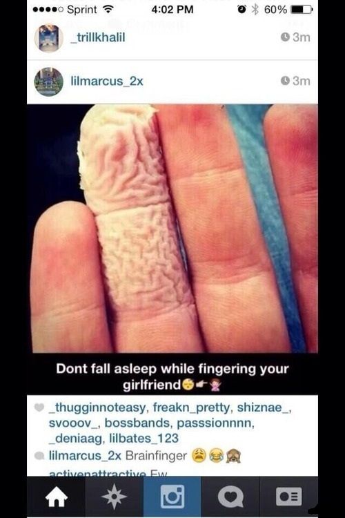 Das erste Bild: Mein Penis sieht auch immer so aus wie der Finger, wenn ich in meiner Freundin einschlafe! hihi