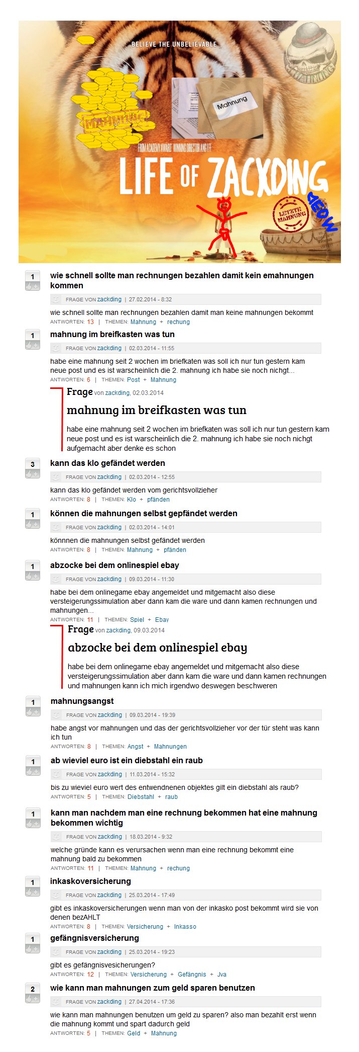 Respekt. Nach (sehr) langer Zeit mal wieder ein Picdump auf altem Niveau. Voll Haupschuhl halt unn so. Hab isch misch voll bepisst vor lach’n, ischwör. Gute Besserung.