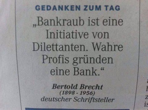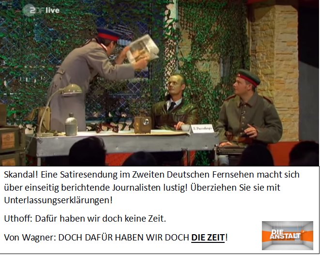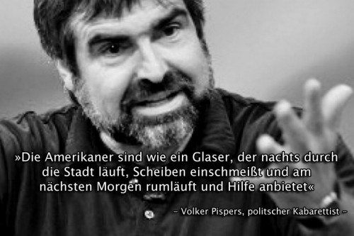 Volker Pispers Zitate mal einstreuen ist ja noch halbwegs okay. Aber sowas dumpfes ist erstens nicht lustig und zweitens noch nichtmal auf irgendeine Weise der Auseinseinandersetzung mit dem Thema zuträglich. Es ist einfach nur hohl und unter der Würde dieser Seite wie ich finde.