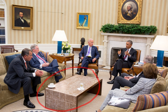was sollte das mit dem bild mit obama wo die 2 getränke eingekreist waren?