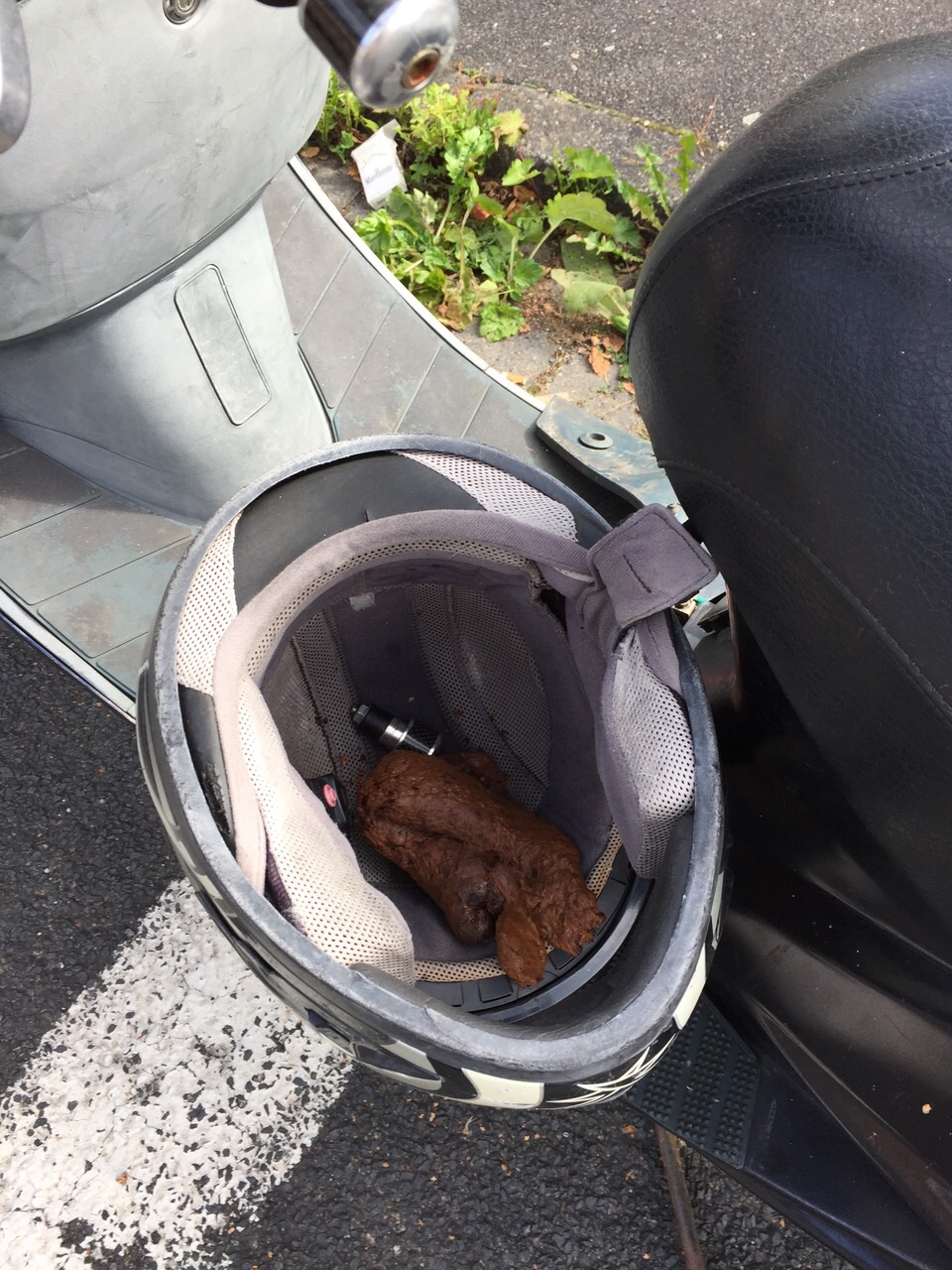 Wer anderen in den Helm scheißt, kriegt die Kackwurst wieder reingeschoben.. ekelhaftige bäh…