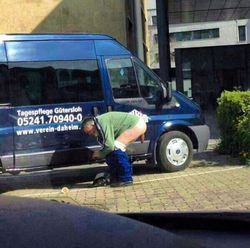 lol, da scheißt der alte Huso einfach am hellichten Tag auf den Parkplatz … was geht denn ab?! 😆