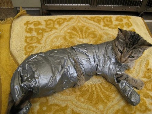 was soll das mit der Katze ? ist das Paketband ?