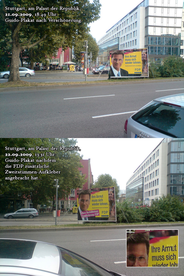 Ihr behinderten Vollidioten ! Wie kann man das mit der FDP nicht verstehen. Die haben das Plakat verunstaltet und ein Tag später, als die FDP typen kamen um da was draufzukleben haben die’s nicht gecheckt. Verstanden ihr behinderten kinder
