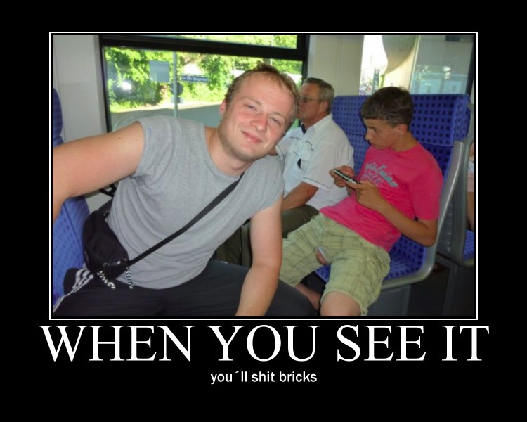 Beim you see it Bild hängt was aus der Hose des jungen Mannes
