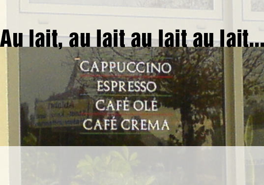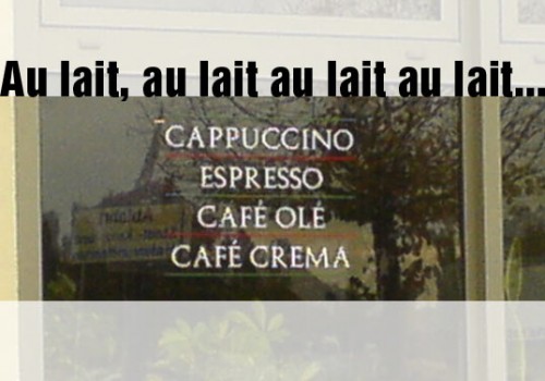 Es heißt „Café au lait“ ( = Milchkaffee) und nicht „Café olé)…