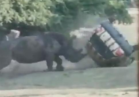 Nashorn vs. Auto im Safaripark