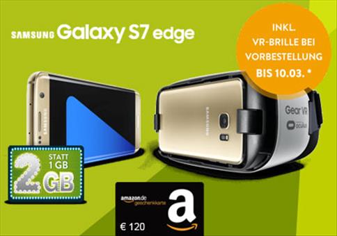 Es gibt definitiv keinen besseren Deal: Allnet-Flat + 2GB LTE + Galaxy S7 oder S7 Edge für 1€ + obendrauf eine GRATIS Virtual Reality Brille + 120€ Amazon.de-Gutschein!