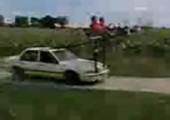 Mit dem Skateboard vors Auto springen.