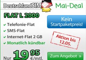 Beim letzten Mai-Deal geht DeutschlandSIM in die Vollen: Bis 02.06. gibt es nochmal die Tarif-Highlights der bisherigen Aktionen. Wer sich am O2 Netz nicht stört, der bekommt hier Knaller Tarifangebote OHNE Vertragslaufzeit!