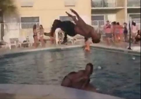 Cooler Stunt am Beckenrand