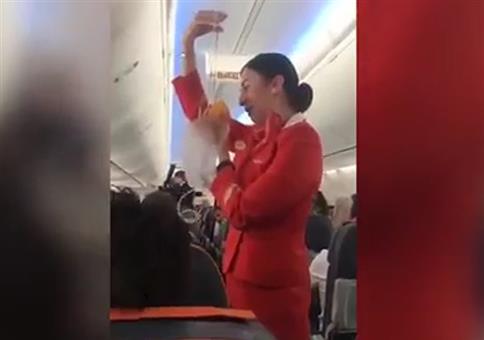 Flugbegleiteransage mit viel Hingabe