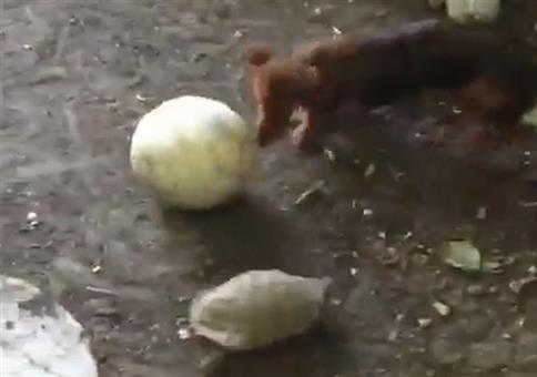 Schildkröte und Hund spielen Fußball