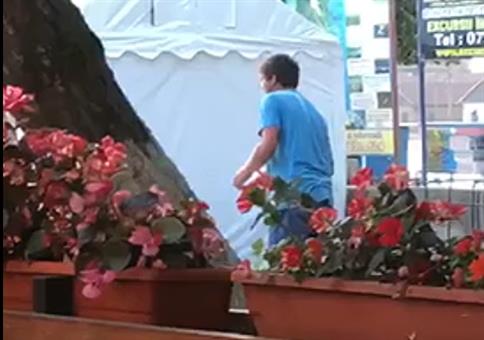 Er macht Bekanntschaft mit der Bewässerungsanlage.