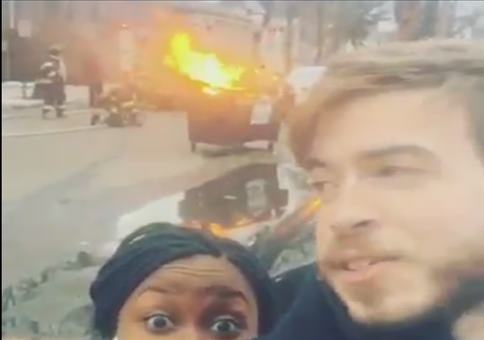 Selfie mit der Feuerwehr im Hintergrund